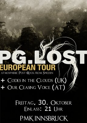 Allem Anschein nach wird es nicht mehr lange dauern, bis sich PG.LOST aus Schweden bedenkenlos in die Liste der Meister der stummen Instrumentalisten einreihen dürfen. Ganz in der Tradition von Mono, Red Sparowes oder auch Explosions in the Sky setzen PG.LOST auf die Kraft des Instrumentalen, verlieren dabei aber nie ihr Eigenständigkeit. Fließende Gitarren, vertrackte Rhythmen und luftige Harmonien, mischen sich zu einer Gefühls- und Soundkaskade, die die Zuhörer abwechselnd peitscht und umschmeichelt. Ihre entschieden sphärische und epische Definition von Post-Rock weiß nicht nur Live zu überzeugen, sondern begeistert auch die Kritiker. For anyone out there planning an instrumental record, listen to this first, titelte das UK-Musikmagazin The Mag über das Debut-Album von PG.LOST.