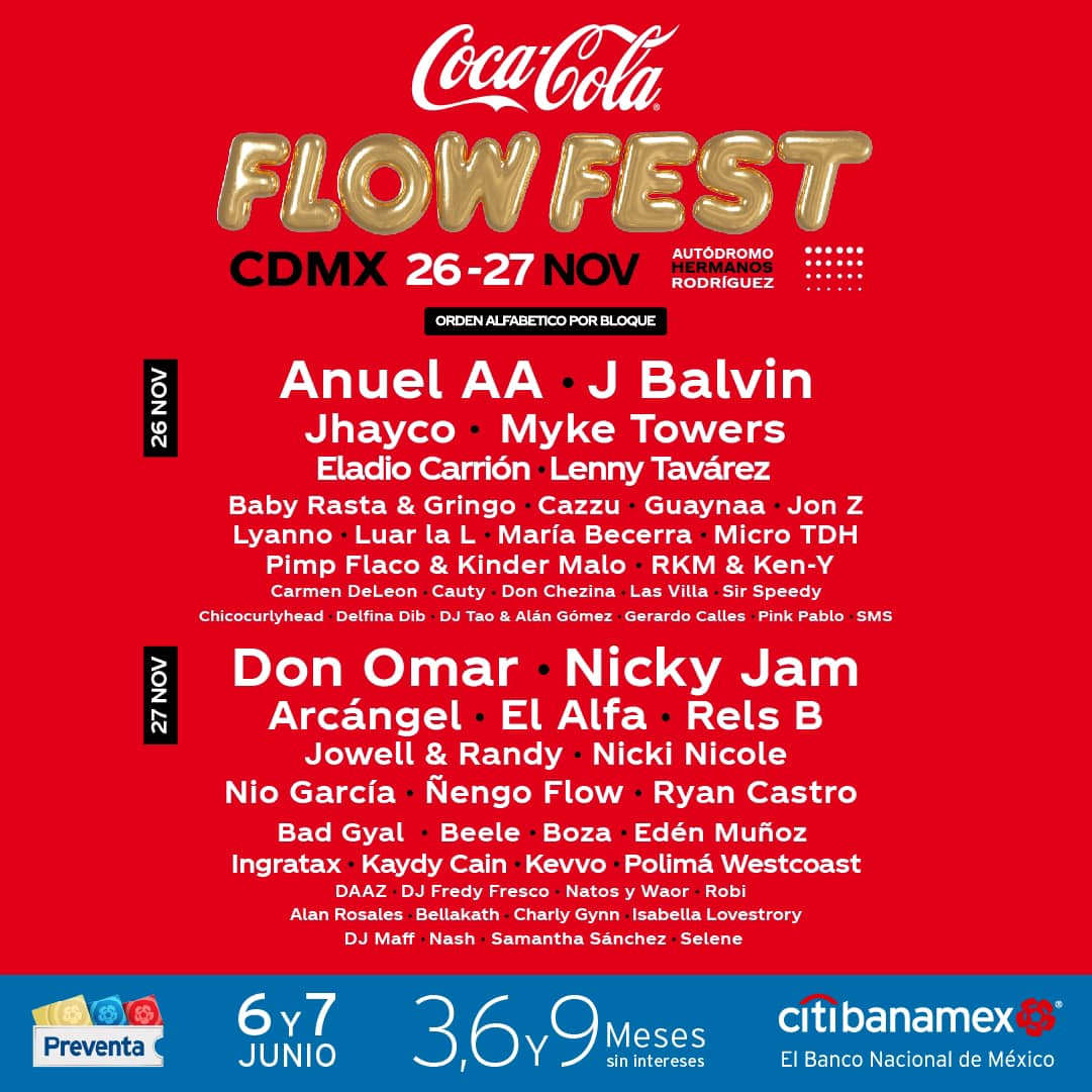Si algo ha caracterizado a la fiesta más grande del genero urbano, es la curaduria en sus carteles, siempre incluyendo los nombres más relevantes del momento, la mejor propuesta y el mejor flow a nivel mundial. En esta ocasión no será la excepción, pues Coca-Cola Flow Fest no podía quedar mal con sus fans y nos rifamos con un cartel que cuidamos hasta el último detalle para que te sumes a esta gran celebración. Atento a las novedades que daremos, pues se viene sorpresas que te volaran la cabeza.