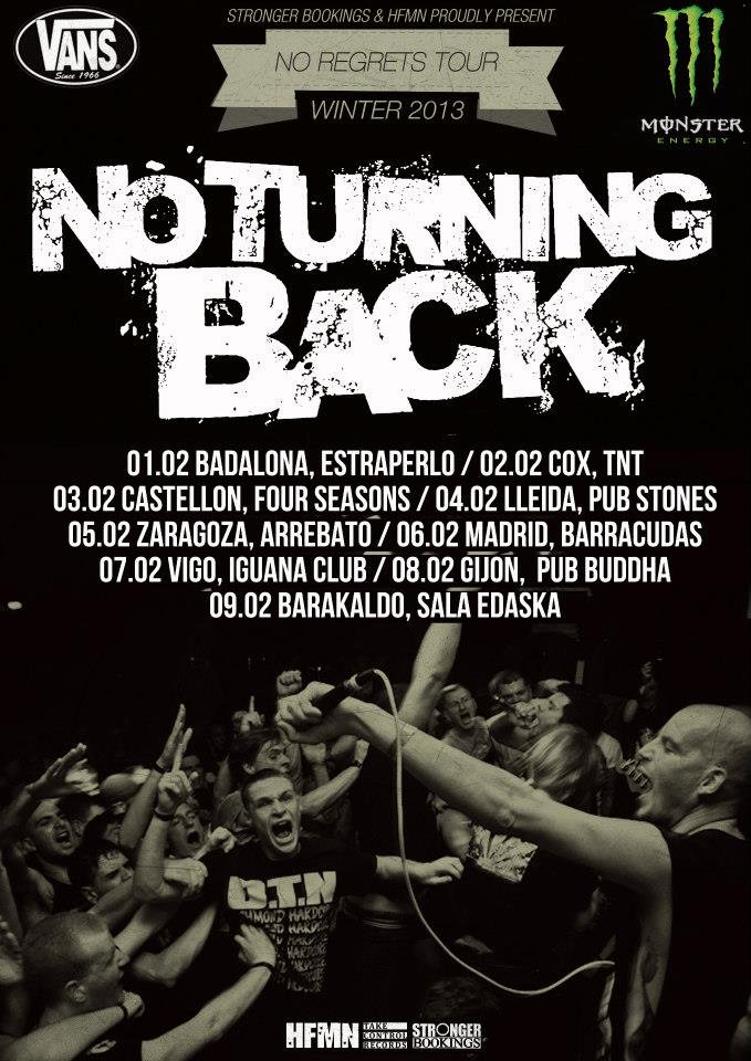 Sin perder un ápice de la fuerza que siempre ha caracterizado sus discos, con "No Regrets" siguen en su línea; temas cortos y rápidos, breakdowns para bailar como un poseso y coros para animar a la muchachada. ¿Para qué más? Tanto el viejo fan como el nuevo va a disfrutar de este disco como si fuera el primer disco de NO TURNING BACK que escucha!