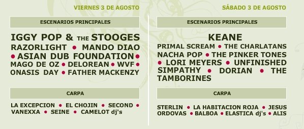 Apertura de las puertas 17:00 los conciertos empezaran a las 18:00