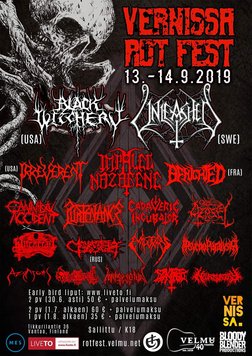 Tummat pilvet kerääntyvät Tikkurilan ylle perjantaina 13. päivä syyskuuta 2019, kun Vernissa Rot Fest manataan ilmoille death ja black metallin säestämänä. Kaksipäiväisessä tapahtumassa paiskotaan rankkaa ja synkkää musiikkia armotta kahdelta lavalta alkuillasta myöhään yöhön 18 bändin voimin.