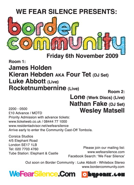 We Fear Silence present Border Community // Friday 6th November 2009 // 2200 - 0500