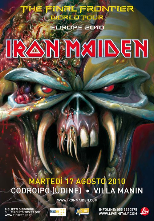 MILANO - 18 Marzo 2010 - Live in Italy è orgogliosa di annunciare che quest'estate IRON MAIDEN si esibiranno in un esclusivo show in Italia. Il concerto si terrà martedì 17 agosto nella storica Villa Manin di Udine come tappa del "THE FINAL FRONTIER WORLD TOUR", dal nome del loro prossimo album la cui pubblicazione è prevista per la fine dell'estate, inizio dell'autunno di quest'anno.