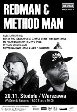 Method Man – czołowa postać ze składu Wu Tang Clanu oraz Redman – MC kultowego zespołu Def Squad z Nowego Yorku – wystąpią razem na jedynym polskim koncercie, który odbędzie się 20 listopada w warszawskim klubie Stodoła!