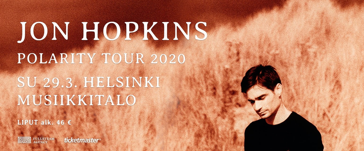 Elektronisen musiikin suunnannäyttäjä Jon Hopkins saapuu Suomeen Polarity-kiertueensa myötä. Jättimäisen suosion saavuttanut artisti esiintyy Helsingin Musiikkitalossa, jossa häntä säestävät kitaristi-tuottaja Leo Abrahams, viulusti-sovittaja Emma Smith ja sellisti Laura Moody. Konsertin liput tulevat myyntiin Ticketmasterissa perjantaina 13. syyskuuta.