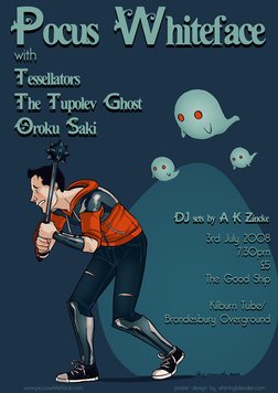 Pocus Whiteface: Headliners Pocus Whiteface have picked the other bands playing tonight to keep a single feel to the night. Pocus Whiteface like to combine strange time signatures, post-hardcore guitar noise and easy-to-hum melodies with lyrics about evil sea-creatures, mafia snitches, spam emails and physics...and the occasional girl. http://myspace.com/pocuswhiteface