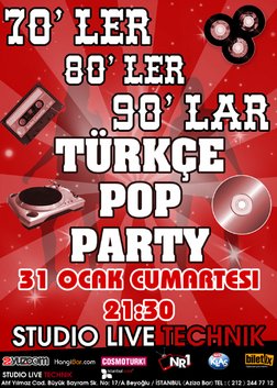 70'ler 80'ler 90'lar Türkçe Pop Party ,31 Ocak Cumartesi Studio Live Technik!