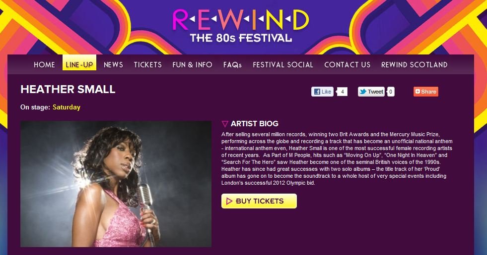 Heather Small will perform live as part of the Saturday line-up for the Rewind Festival: http://www.mpeople-heathersmall.co.uk/