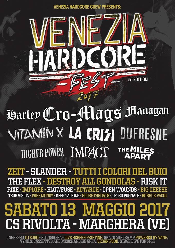 2017 edition of anual hardcore fest at CSO Rivolta, Marghera (Venezia). 10 €.