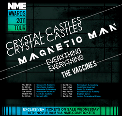 The four acts will hit the road on February 3 and tour the UK until February 19, when they play London's O2 Academy Brixton. The NME Awards 2011 will take place on February 23 at the same venue.