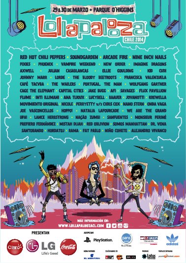 Ya esta todo listo para el festival más esperado de todos: Lollapalooza Chile 2014! Los horarios ya están disponibles en http://www.lollapaloozacl.com/horarios-lollapalooza-chile-2014 solo queda esperar la fecha y disfrutar de nuestras bandas favoritas, no te quedes abajo, compra tu entrada y se parte!