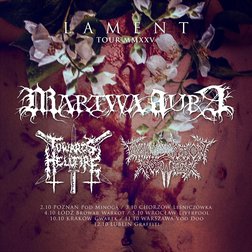 MARTWA AURA – horda rozpoczęła swoją działalność 15 lat temu i konsekwentnie trzyma się obranej cmentarnej ścieżki i swojego oryginalnego pomysłu na Funeral Black Metal. Dotychczasowy dorobek prezentuje się dość okazale, a w dodatku, w tym roku do grona wydawnictw dołącza najnowsze dzieło poznaniaków – „Lament” – płyta ukazała się pod banderą niezwyciężonego Malignant Voices i zbiera bardzo pozytywne opinie! Zespół po trzech latach niebytu scenicznego wraca do gry z odświeżoną sekcją rytmiczną w postaci Desolatora i Barabasza. Niech pochłonie Was śmierć!