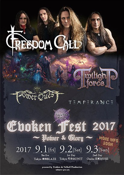 ヘッドライナーのFreedom Call、セカンドライナーのTwilight Force、更にPower QuestやTemperanceも決定!益々期待が高まるぞ!
