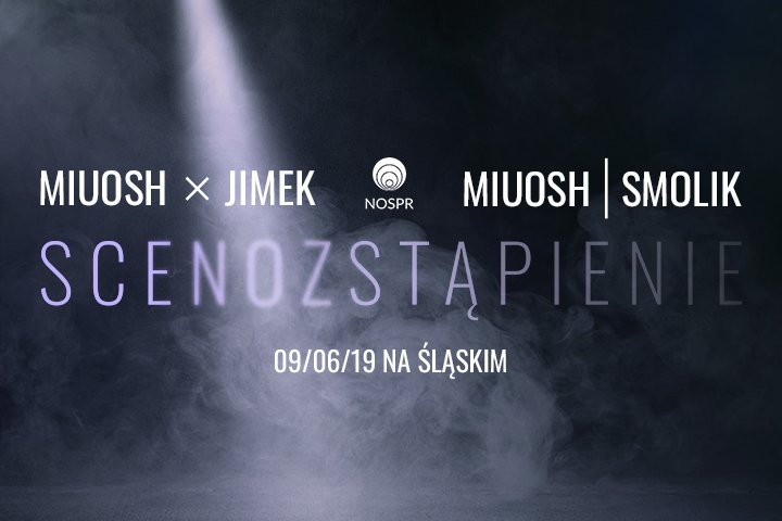 Po czterech latach katowicki raper zdecydował się zejść ze sceny NOSPR-u i zakończyć koncertowanie w ramach dwóch cieszących się olbrzymią popularnością formatów. Już 9 czerwca na Stadionie Śląskim w Chorzowie odbędzie się Scenozstąpienie, czyli koncert jakiego nie było, łączący w sobie aż dwa artystyczne projekty. Podczas takiego wydarzenia nie mogłoby zabraknąć wyjątkowych gości. Do Miuosha, Jimka, Smolika oraz muzyków NOSPR-u dołączą artyści z różnorodnych muzycznych obszarów – Katarzyna Nosowska, Piotr Rogucki, Paluch, Kev Fox, Katarzyna Golomska, Natalia Grosiak, Katarzyna Kurzawska, Abradab oraz Zespół Pieśni i Tańca „Śląsk” im. Stanisława Hadyny. Ich obecność zapowiada spektakularne widowisko przełamujące schematy i sposób myślenia o rapie. Nic dziwnego, że na Stadionie Śląskim pojawi się aż 40-tysięczna publiczność!