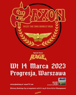 Ikona brytyjskiego heavy metalu zawita do Polski na jedyny koncert podczas trasy “Seize the Day World Tour”. SAXON zagra 14 marca 2023 roku w warszawskim klubie Progresja! Biff Byford i spółka przyjadą do Warszawy promować swój ostatni album “Carpe Diem” z 2022 roku, wydany nakładem Silver Lining Music. Gościem specjalnym na koncercie będzie niemiecki zespół Rage, który uznawany jest za członka wielkiej czwórki niemieckiego power metalu, obok takich tuz jak Helloween, Running Wild i Grave Digger.
