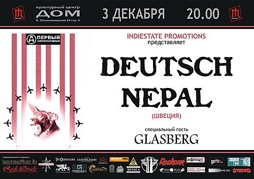 Indiestate Promotions рады представить очередной и для многих долгожданный российский тур одного из самых харизматических артистов сегодняшней индустриальной сцены – Лины Бэйби Долла и проекта Deutsch Nepal. Центральной точкой нынешнего тура станет московское выступление проекта, которое по традиции пройдет в культурном центре “Дом”. Специальным гостем на нашем концерте, где Лина исполнит в основном композиции с нового и лучшего в его творческой карьере альбома “Amygdala”, станет санкт-петербуржский артист Glasberg, уже выступавший ранее на одной сцене с Deutsch Nepal – его экспериментальный абсурдистский нойз с изящными отсылками к Хармсу и Беккету даст представление об индустриальном взгляде на мир с другого берега Балтики.