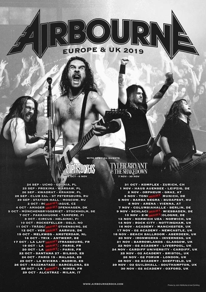 Australiensiska Airbourne är en kraft utan dess like. Direkt från "Down Under" kommer rockbandet ledda av sångaren Joel O'Keeffe – till Sverige för två konserter i höst! Två helger är räddade: lördag 5 oktober på Münchenbryggeriet i Stockholm och fredag 11 oktober på Trädgår'n i Göteborg!