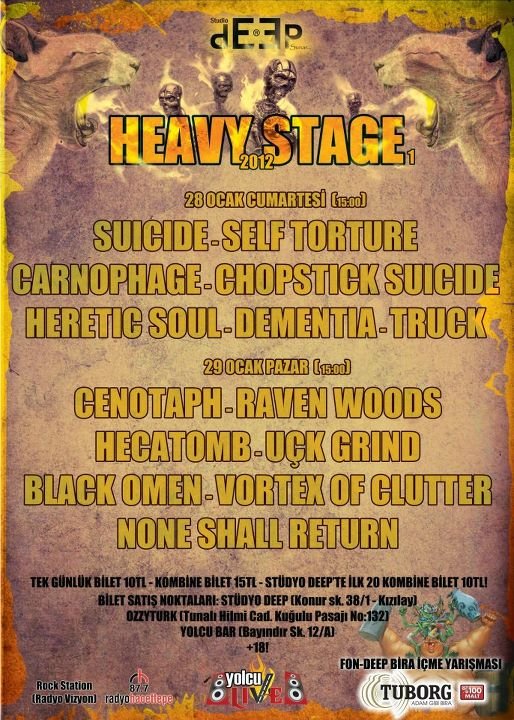 Ankara'da her yıl tekrarlamayı planladığımız HEAVY STAGE adlı organizasyonumuzun ilkinde (28 Ocak/Cts. 2012 - 29 Ocak/Pzr 2012 @Yolcu Live) sahne alması kesinleşen gruplarımız: