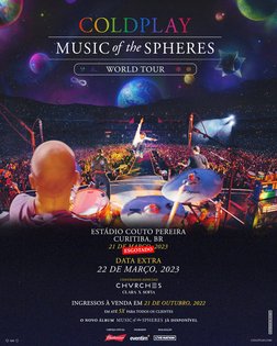 ❗ ALERTA DE SHOW EXTRA! Devido a alta demanda, o Coldplay fará mais um show da #MusicOfTheSpheresTour em Curitiba! A apresentação acontece no dia 22 de março, no Estádio Couto Pereira, e as vendas começam em 21/10, às 10h pela @eventimbrasil e às 11h na bilheteria oficial.