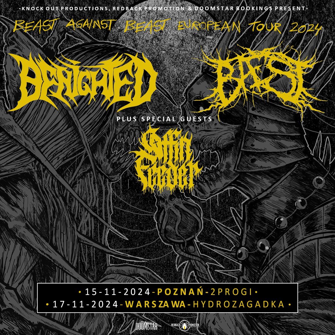 Ich koncert to must-go dla śmierćmetalowych maniaków, szczególnie, że wieczór otworzą genialne supporty: Baest oraz Coffin Feeder. Bilety na wydarzenie są już w sprzedaży na: https://knockoutmusicstore.pl/