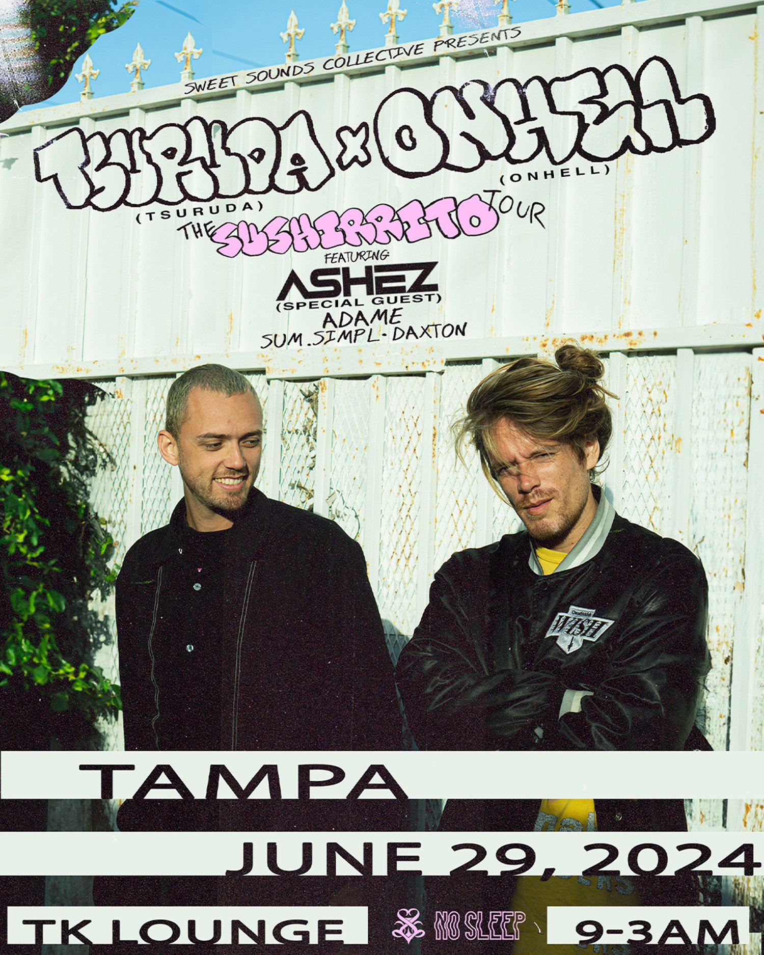 Sweet Sounds Collective Presents: Tsuruda x Onhell w/ guests ASHEZ, ADAME, sum.simpl, and Daxton! Only at the TK Lounge in Tampa.