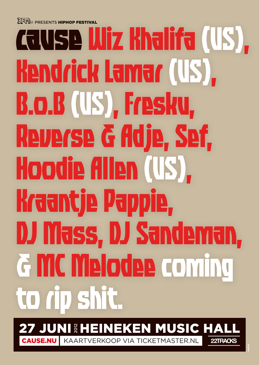 Creativiteit met attitude, dat is hiphop van nu. Dikke woordenstromen, harde teksten, cheeky humor en dat allemaal over beats uit alle windrichtingen. CAUSE presenteert hiphop die beweegt. Artiesten die true blijven aan de hiphoproots, maar het lef hebben om te experimenteren. Artiesten die een crossover zoeken naar experimentele beats, naar hitparades, naar livebands. CAUSE hiphop is alive.
