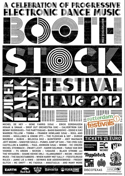 De organisatie van de Dance Parade presenteert met trots een nieuw Dance Festival in Rotterdam. De leegte van de tweede zaterdag (11e) van augustus wordt opgevuld met: Boothstock Festival – A Celebration of Progressive Electronic Dance Music in het Zuiderpark, een van de mooiste festivallokaties van Rotterdam.