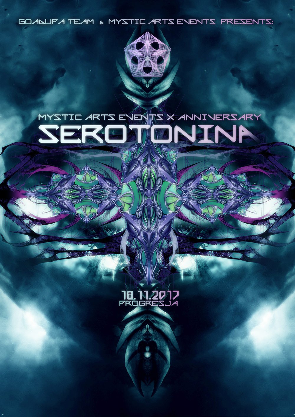 Listopadowa Serotonina będzie jednak wyjatkowa z innego względu. Bedzie to przedewszystkim celebracja 10-ciu, a w zasadzie 11-stu lat działalności kolektywu Mystic Arts Event (MAE), bez którego nie byłoby początków kolaboracji miedzymiastowej pomiędzy Warszawą a Krakowem, w wyniku której powstała seria imprez o nazwie Serotonina!