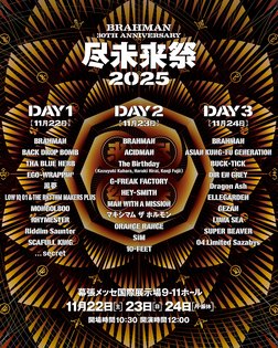 そんな彼らは昨年夏、30周年プロジェクトとして3つの柱を発表した。1つ目は「六梵全書 six full albums of all songs」。 11月4日に横浜BUNTAIで開催されたこの公演は、4時間にわたって75曲をノンストップで演奏するという内容で度肝を抜いた。 2つ目は、2月26日にリリースされる7枚目のフルアルバム『viraha』。自身のルーツであるパンク・ロックやハードコアに対する尽きせぬ想いを実直に表現した作品となった。 そして、3つ目となるのが「尽未来祭」だ。結成20周年の2015年に初めて開催されたこのイベントは、幕張メッセ国際展示場にて2日間20バンドが集まり熱演を繰り広げ、 今や伝説として多くの人々の記憶に刻まれている。あれから10年、ついに2度目の開催を迎えることとなった。前回が20周年で2日間。 ということは、30周年となる今回は当然、3日間の開催となる。出演バンドの発表は後日になるが、BRAHMANの30年間の歩みを考えると、 かなり幅広いラインナップになることは想像に難くない。彼らにしかなし得ない3日間になるだろう。