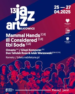 Tegoroczny program dedykujemy oczywiście muzyce improwizowanej i eksperymentalnej, wywodzącej się częściej z klubów niż sal koncertowych, raczej zapatrzonej w ducha oporu i transgresji niż w bezpieczne tradycje. W 13 edycji KJAF zagrają zarówno międzynarodowe składy zakotwiczone w brytyjskiej scenie muzycznej Mammal Hands, Ebi Soda i Tallulah Rose&Julek Warszawski – jak i nowe, debiutujące właśnie polskie formacje: Omasta i Głupi Komputer. Łączy je poszukiwanie nowych form wyrazu, synteza jazzu z innymi gatunkami muzycznymi, wszelkie ich pogranicza.